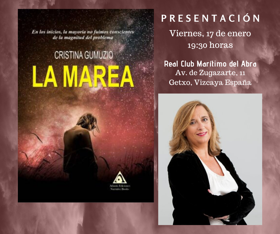 Cristina Gumuzio presenta su cuarta novela, La Marea (ediciones Atlantis), el próximo viernes 17 de enero. Será en el Real Club Marítimo del Abra en Las Arenas, Getxo (Av. de Zugazarte, 11) a las 19:30 h.