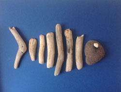 Tal como recoge El Correo, la exposición se compone "de una docena de trabajos realizados a partir de elementos encontrados en la naturaleza, piedras, maderas o hierros, que transforma en arte con mucha paciencia y habilidad. Con unas pequeñas maderas cogidas en Cerdeña, mientras paseaba, que sitúa en el cuadro de manera transversal y una piedra con forma ovalada hace un pez muy esquemático y sencillo; con doce garbanzos, uno de ellos negro, construye el cuadro llamado 'Judas', con el que consiguió un premio de poesía visual en Badajoz; con una cadena de barco realiza un perfecto begiaundi; y con una hoja de árbol, en cuyo anverso una de sus hijas ha marcado sus labios, hace un poema lleno de emoción que titula 'Ternura del viento'"